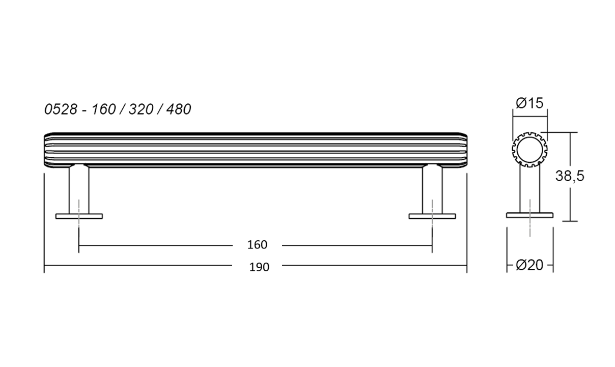 Ручка скоба RILLE 0528160L291, материал Замак, отделка Золото, 190*15*38,5 мм